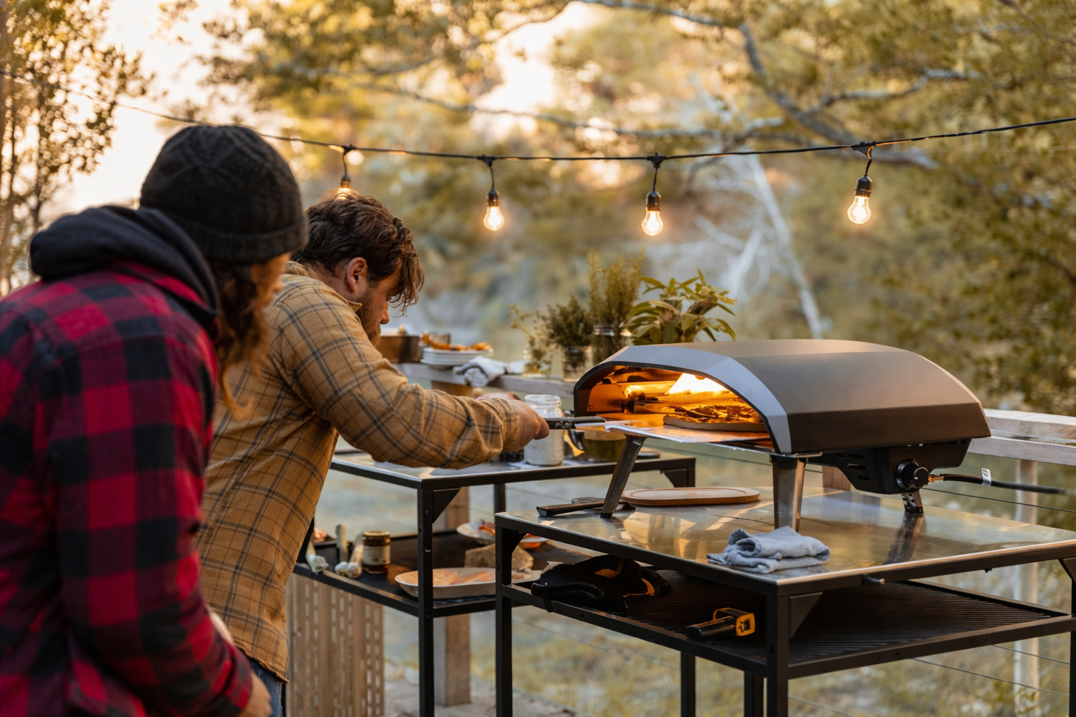 Un horno de pizza portátil para exteriores que funciona con gas propano, diseñado para llevar la experiencia de una pizzería profesional directamente a tu jardín, terraza o cocina outdoor.